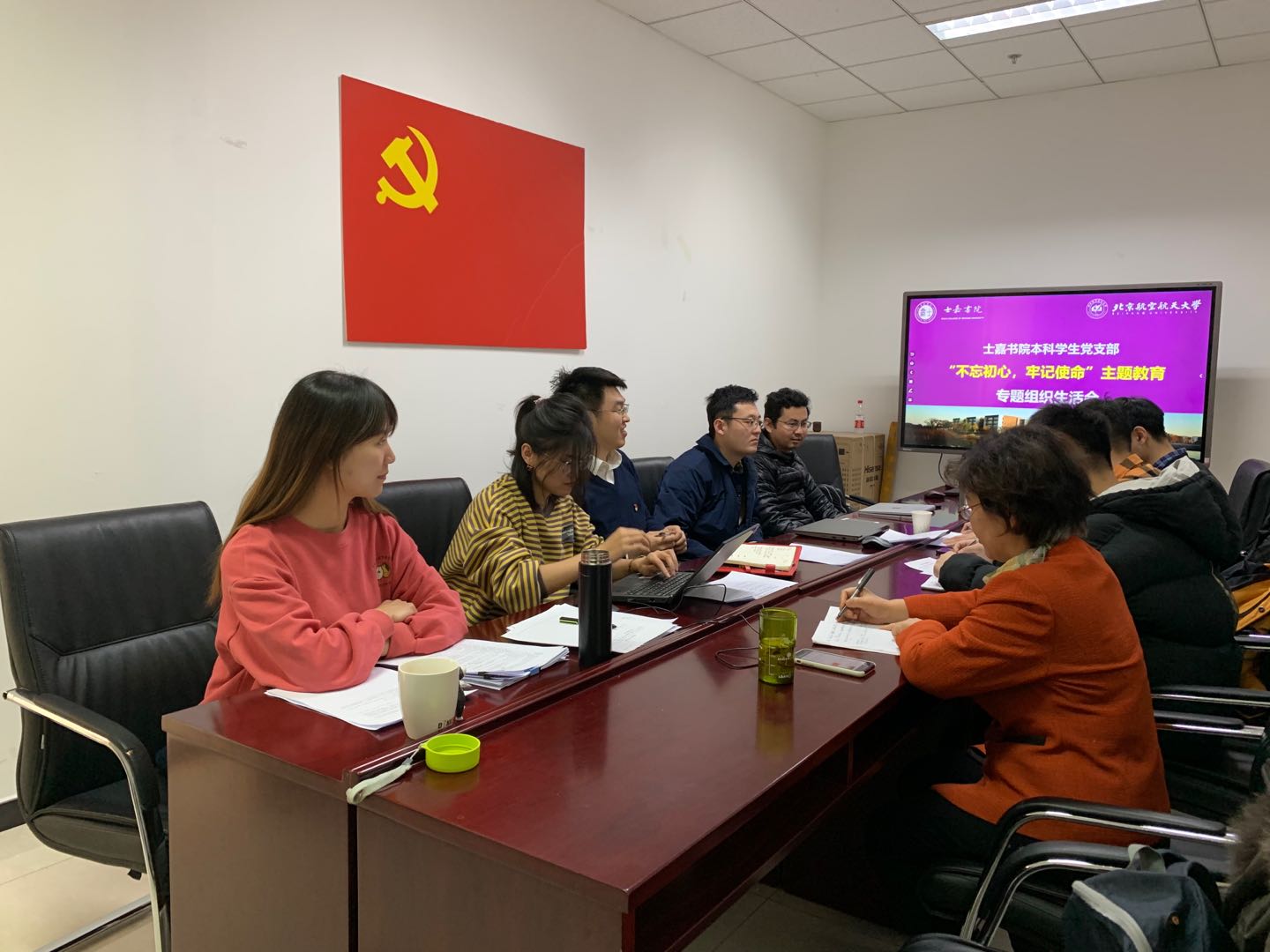 (通讯员 于万欣 冀赵杰)2019年12月4日上午,士嘉书院本科员工党支部于沙河校区主楼B607召开“不忘初心,牢记使命”主题教育专题组织生活会,进行近期党建工作的总结及党员的批评与自我批评,支部全体党员出席会议,支部特邀党建组织员王梦丽,北航公司党委委员、致真书院执行经理闵敏列席会议,会议由支部书记冀赵杰主持。