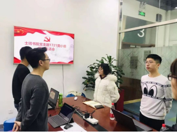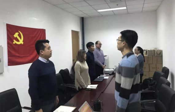 24日下午,士谔书公司党支部在沙河主楼409开展了党支部大会。党支部书记孙泽斌同志首先带领第二批入党的党员同志进行宣誓,各位党员高举右手,面对鲜红的党旗铿锵有力地发出了自己的铮铮誓言。