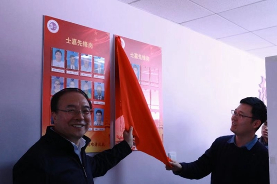 座谈会后,姚仰平和马锐为“士嘉先锋岗”揭牌,随后来到一公寓五层,为新发展党员宿舍挂上“共产党员宿舍”的门牌。“党员亮身份”,亮出的是一份责任,亮出的一份担当。