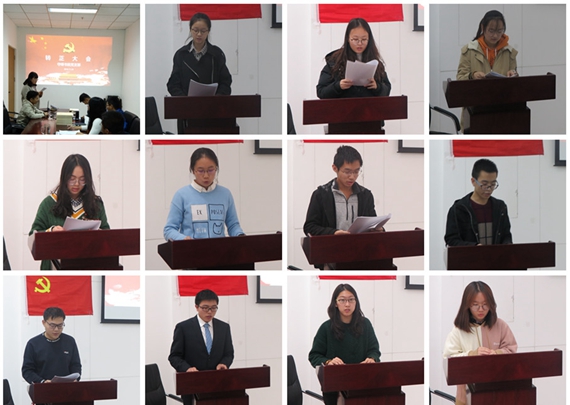 发展党员大会在雄壮的《国际歌》中拉开了序幕。之后,各发展对象宣读了入党志愿书,入党介绍人向大会介绍了该发展对象的详细情况,从各个方面对该发展对象做出评价,并对其能否入党表明了自己的态度。随后,党支部其他成员及发展对象根据自身了解发表意见,提出评价、建议和批评。在综合考虑发展对象的情况以及各成员的意见之后,与会的党支部成员就是否同意该发展对象转为预备党员进行无记名投票。