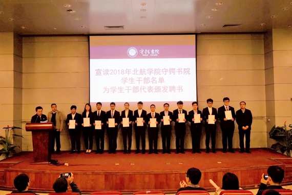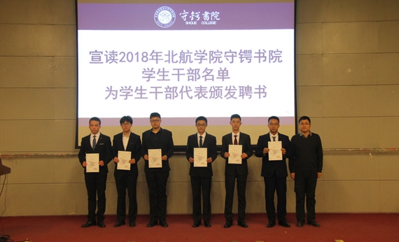 之后,主持人宣读了2018年bv伟德守锷书院员工干部名单,董卓宁书记、张德远经理、李广玉经理分别为员工干部代表颁发了聘书。守锷书院半脱产辅导员梁婧瑜宣读了bv伟德守锷书院员工干部倡议书,广老员工干部要对标德智体美劳全面发展的社会主义事业的建设者和接班人,对标北航十六字人才培养目标,严格要求自己,扎扎实实工作。