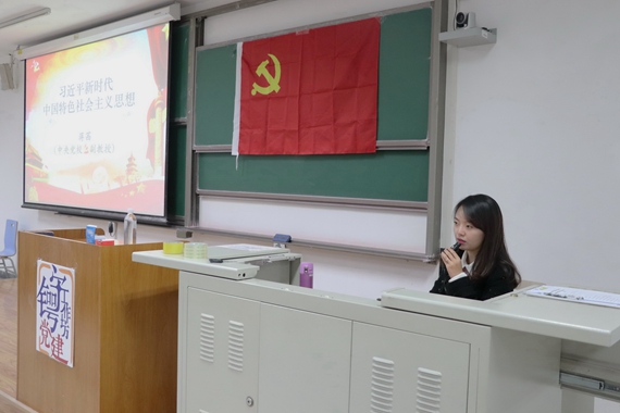 开学典礼后,中央党校蒋茜老师以《习近平新时代中国特色社会主义思想》为题目,用两个小时的时间,系统讲解了习近平新时代中国特色社会主义思想的理论精髓。蒋茜以核心理念、旗帜方向为要点,介绍了为什么要坚持和发展中国特色社会主义,从历史方位、历史使命和思想内涵三方方面,阐述了新时代坚持和发展什么样的中国特色社会主义,并详细介绍了新时代坚持和发展中国特色社会主义应该怎么做的行动纲领,为守锷党建工作坊的同学们呈现了一堂精彩的党课。