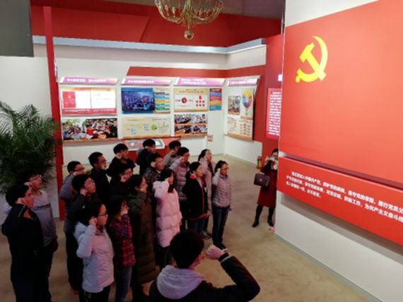 参观开始前,党支部书记郭谦同志带领支部新发展的18名预备党员面对党旗进行庄严宣誓,之后又带领着支部委员重温了入党誓词。在宣誓结束后,各个党小组进行了自由参观。
