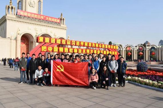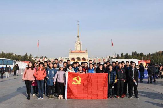上午10点左右,同学们到达了北京展览馆,每个同学都怀着敬仰而又期待的心,走近这座宏伟的展馆。鲜花簇簇,喷泉涌涌,各参观团带的国旗和党旗飘扬,展现着祖国的繁荣与昌盛。