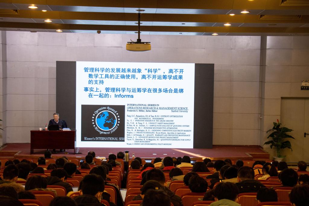 讲座中,黄董事长围绕“国家发展与管理科学前沿”这一核心主题,从“国家与管理科学”,“数理知识与管理科学”和“管理科学前沿”三个方面对管理科学对国家发展的意义进行深入讲解。他分析了改革开放以来中国各方面的跨越式发展,科普数学知识在管理科学方面的广泛应用,激发了同学们学习报国的使命感以及对数理知识的学习热情。