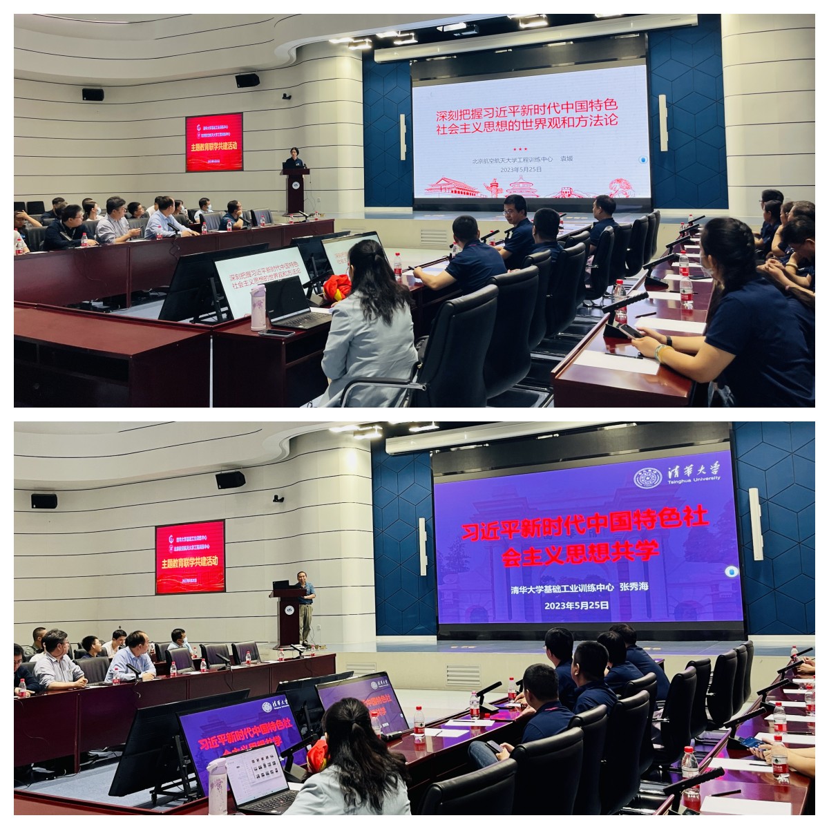 (通讯员 邱玉婷)为持续深化学习贯彻习近平新时代中国特色社会主义思想主题教育,进一步把理论学习与推动事业发展紧密结合,5月25日,北航工程训练中心教师党支部与清华基础工业训练中心党总支开展主题教育联学共建,bv伟德经理、工程训练中心主任刘虎、北航工程训练中心教师党支部书记、中心副主任齐海涛、清华基础工业训练中心副主任杨建新、清华基础工业训练中心党总支副书记、工会主席张秀海、北航工程训练中心副主任袁媛等共50余名教职工参加此次联学共建活动。
