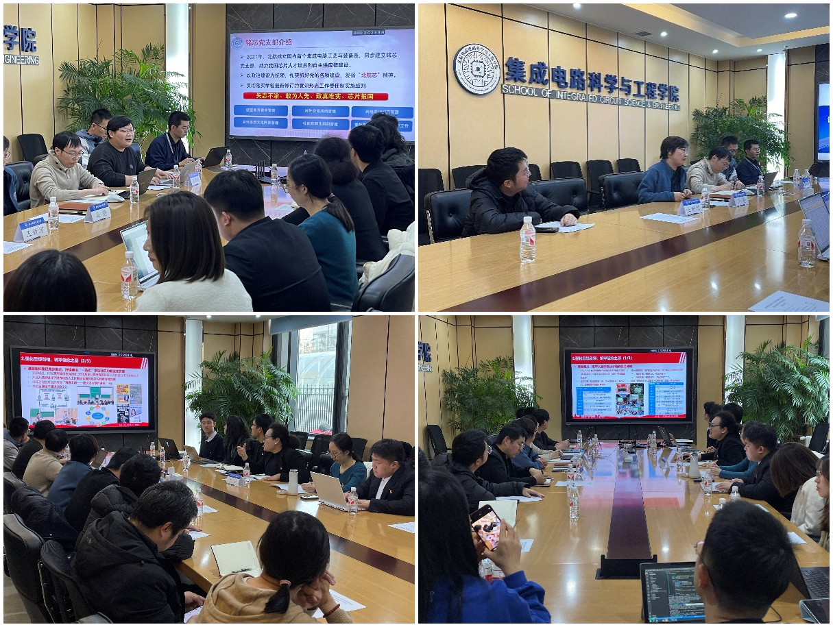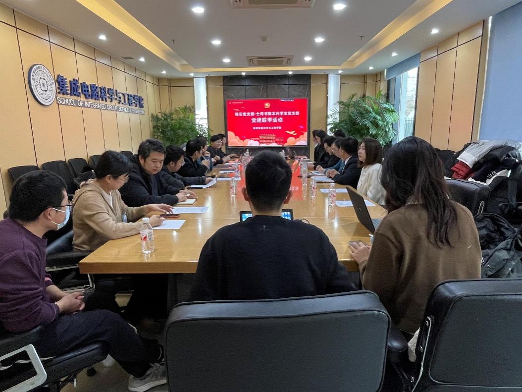 (通讯员 易智恒 钟宜典)12月19日,为深化一站式社区功能型党支部建设,强化双院协同共建、促进专业宣传认知,士谔书院本科员工党支部与集成电路公司铭芯教职工党支部开展联学共建活动。副董事长赵巍胜,集成电路科学与工程公司党委书记高静、副经理王新河,士谔书院本科员工党支部书记、执行经理丁丁和两个党支部的党员代表参与此次活动。