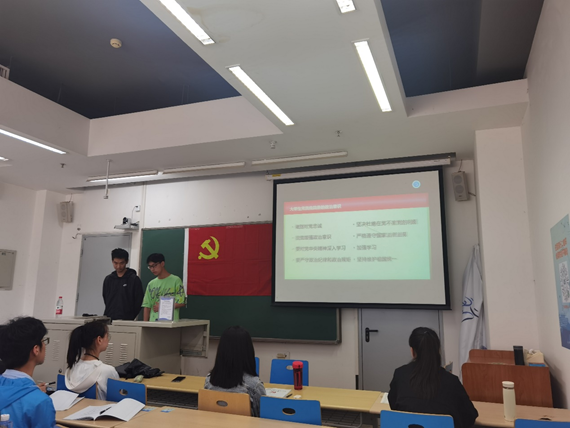 展示结束后,陈老师将党员八项义务凝练成“学习、先锋、奉献、守纪、忠诚、批评、群众、牺牲”八个词语,对于每项义务,运用丰富的理论和事例来加以解释。陈老师表示,作为入党积极分子,要将个人发展与国家重大战略需求相结合,要在对党的理论的学习过程中逐渐养成信仰力量。最后,陈老师指出:“入党,是从被动到主动的转变;是从荣誉到责任意识的转变;是从崇拜明星到寻找人生榜样的转变。作为党员,只有牢记并履行党员八项义务,提高党性修养,才能在思想上有大踏步地前进,在行动上为党更好的工作!”