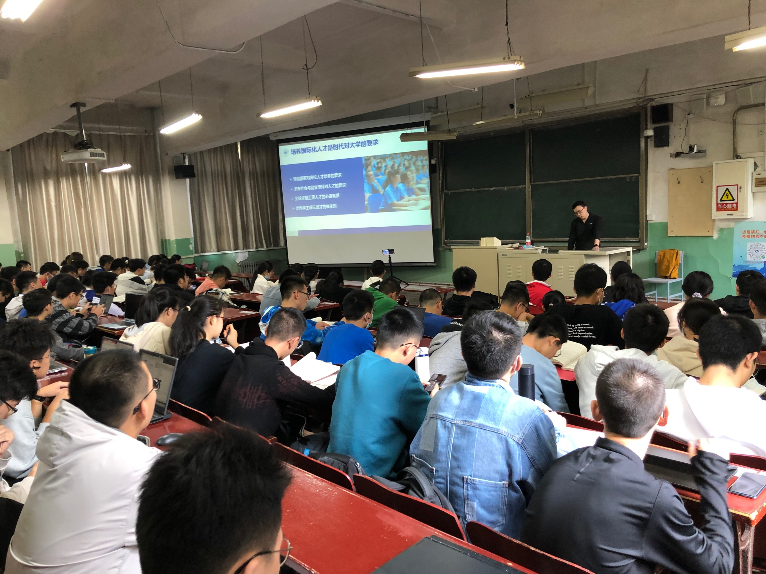主讲人高源从培养国际化人才是时代对大学的要求谈起,向同学们讲解了近年来党和国家对高校人才培养的要求、未来社会与就业市场对人才的要求,同时引入了全球卓越工程人才的必备素质,帮助同学们在老员工活中找准自己的定位及未来发展方向。讲座中,高源详细介绍了北航的“UPS国际化发展战略”以及领军领导人才所需的全球胜任力。他通过实例向同学们介绍了北航目前的国际交流现状以及政策,帮助同学拓宽未来发展道路。