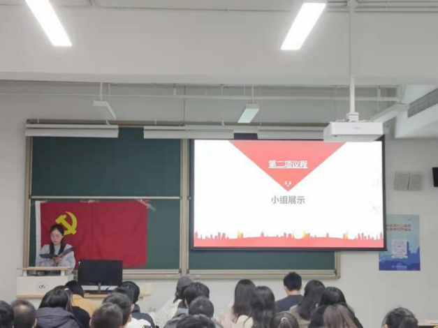 沙龙党课第一个环节为小组展示。三个小组分别就“如何理解习近平总书记在‘七一讲话’中所讲的‘归根到底是因为马克思主义行’”、“马克思主义为何始终站在时代前沿”、“为什么中国特色社会主义是社会主义而不是其他主义”三个问题展开了探讨。同学们从“马克思主义是什么”出发,厘清逻辑,分析了“马克思主义行”是因为其严谨科学,并且站在人民的立场,追求人类的解放;而马克思主义中蕴涵的与时俱进的观念保证了马克思主义的先进性,从而使其始终站在时代前沿;最后同学们通过介绍“社会主义是什么”“中国特色社会主义与马克思主义的联系”阐述了只有社会主义适合中国国情,只有社会主义才能实现中华民族的伟大复兴。同学们的展示得了李苏玉老师的高度评价,她称赞同学们研究视角宏观而全面,同时,李苏玉老师也提醒同学们,可以结合当下的时政热点进一步展开分析,将理论与实践更好结合,同学们受益良多。