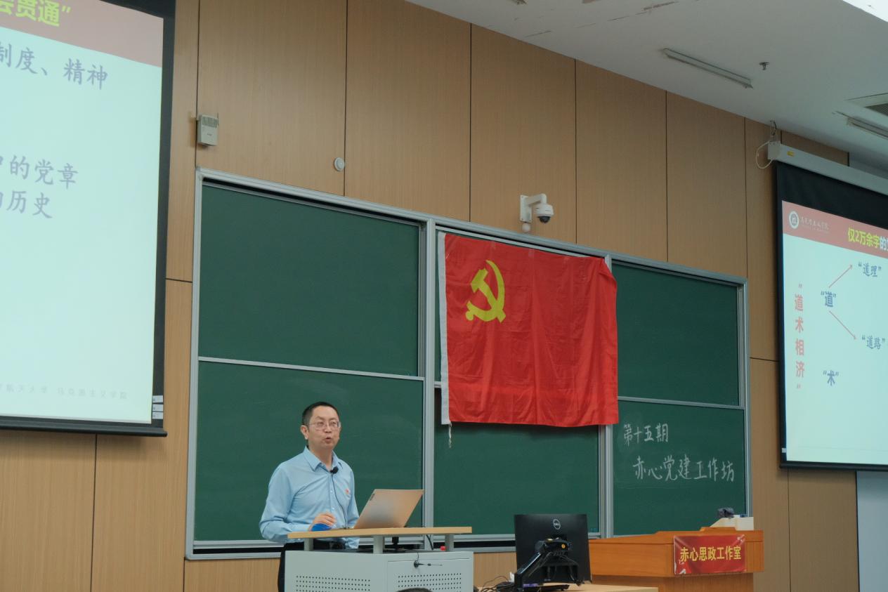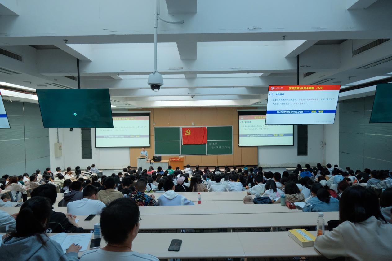 10月8日下午,由马克思主义公司高宁老师主讲第一节专题思政课《结合党史学党章——以<入党誓词>为例》正式开讲。知行书院、沈元公司的入党积极分子、老师及辅导员300余人参加本次党课。