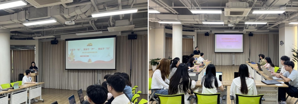 知行书院执行经理、知行书院本科员工党支部书记王亚同志首先带领党员同志回顾了党史上的纪律教育,从学纪、知纪、明纪、守纪方面进行分享,将党纪学习教育立足于“知”、贯穿于“严”、落实于“行”。通过逐章逐句解读《中国共产党纪律处分条例》,引导支部党员切实做到真学真信、守住纪律底线,将纪律教育融入日常、抓在经常,让党员、干部受警醒、明底线、知敬畏,将党纪学习教育成果转化为推动书院工作高质量发展的实效。