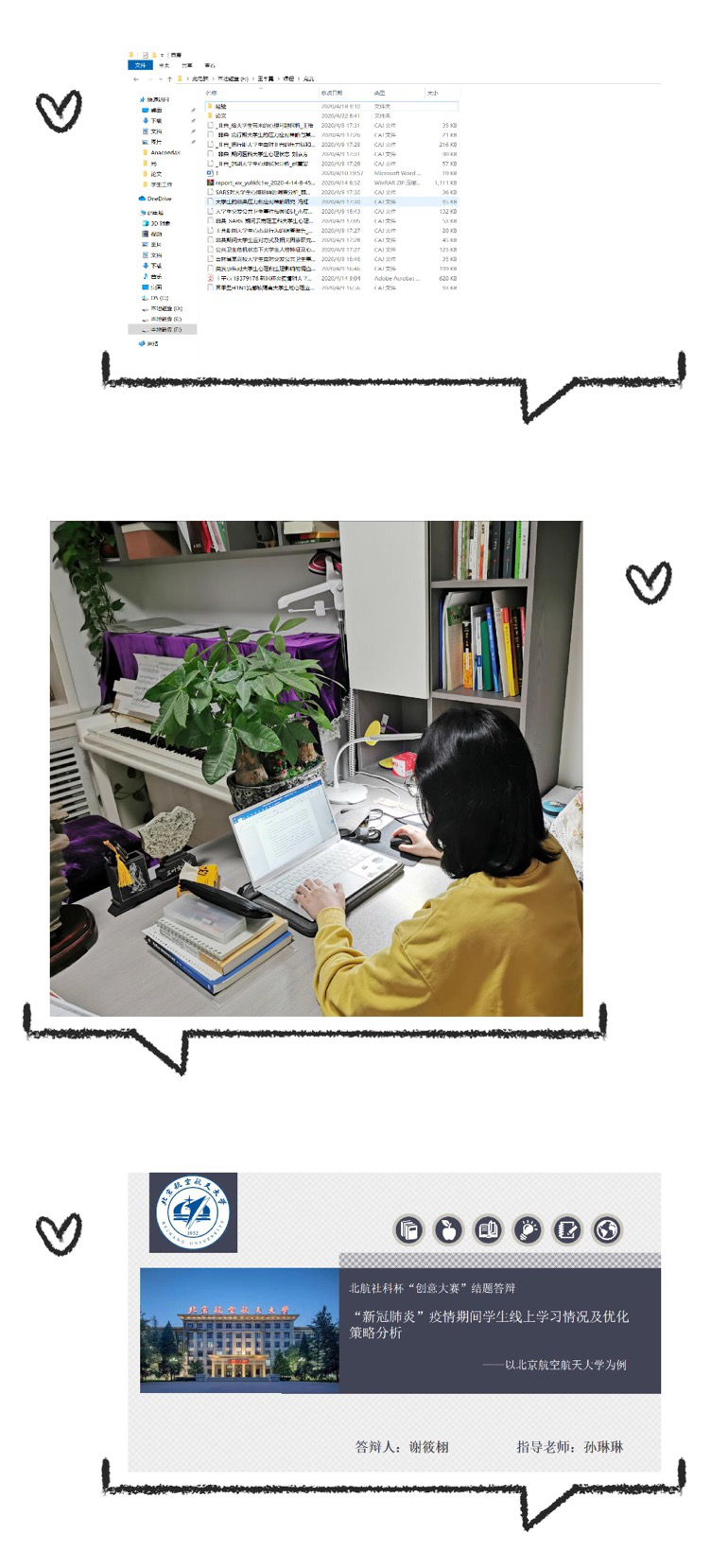疫情期间,我们学习生活的有序进行,离不开公司、老师以及每一位员工的共同努力,这也是我论文选题的灵感来源。撰写论文的过程也是一波三折,我的论文总共换了三次选题,指导老师始终耐心为我讲解、拓展思路、推敲写作的角度与深度;调查问卷的数据收集离不开同学们的热情帮助;导员和学长学姐们通过宣讲等多种形式,让我们对比赛的流程和论文撰写以及答辩的技巧有了更好的掌握;评委老师也从不同角度为我们提出改进的建议;同学们精彩的答辩更是一次精彩的思想碰撞。这一次的社科杯竞赛,全程都是以线上的形式进行,整个过程不仅有学术水平的提升、竞赛经验的积累,也收获了满满的感动。