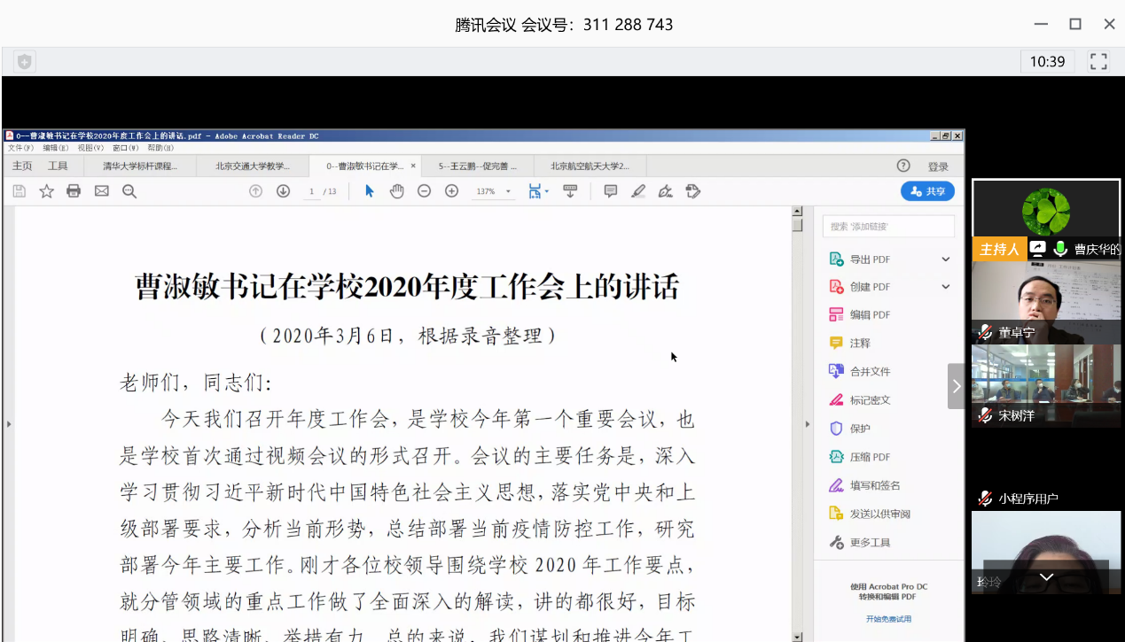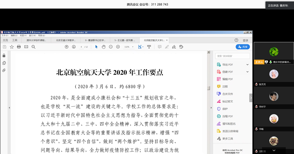会议指出,各单位要统筹抓好疫情防控和落实公司重点工作,深刻认识北京疫情防控工作的重要性,提高政治站位和责任意识,遵守公司各项规定,切实把各项防控工作抓实、抓细、抓到位。要及时总结疫情防控有效做法,形成长效机制,完善相关制度;配合公司总体部署,扎实推进两校区双核发展;落实好公司关于人才培养、教师队伍建设、党的建设等方面工作要求;要进一步提升人才培养工作水平,形成北航特色的大类培养模式,进一步加强对员工美育、劳育的培养;公司要开展有组织的教学工作,推进国家级、校级一流本科课程建设。要继续落实“三个转变”,结合自身工作,全面提升公司制度建设和内部治理能力。