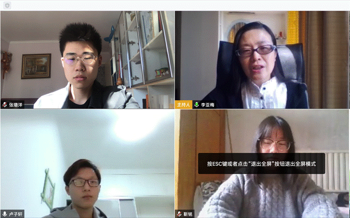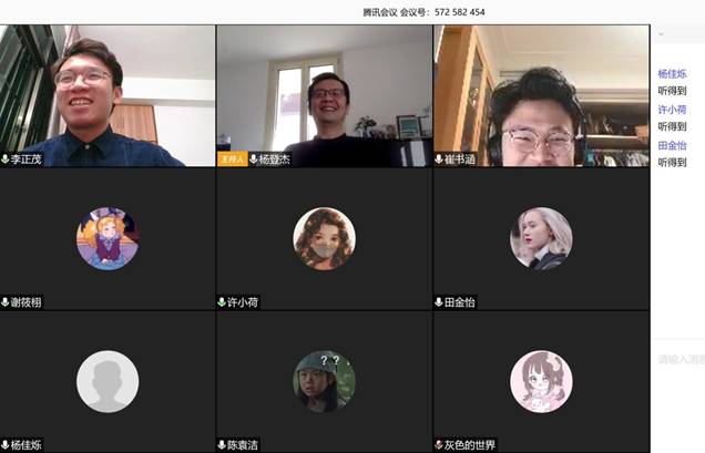 在新的导学篇章开启之后,书院的导学活动绽放出别样的精彩。导师们从容不迫、员工们笑意盈盈,透过屏幕后一张张渴望的脸,仿佛看到了明媚的春光。导师们关注每一个员工的成长,叮嘱员工注意身体健康,为员工提供居家学习资料,督促员工合理安排时间,积极提升自我。毕洪海老师与同学们一起观看了电影《传染病》,针对当前疫情进行了实事研讨,交流抗击疫情期间的个人体会与感想。徐涛老师与员工畅聊居家学习状态和网上学习困难,并教授很多热门医学词汇,拓展同学们的词汇量,激发员工对英语学习的兴趣。李亚梅老师给员工分享了往年冯如杯、社科杯优秀论文,对员工选题立意、行文思路都给予了详尽的指导意见。张佳书老师发挥个人特长,为组内员工教授日语,带领员工了解日本文化,拓宽国际视野,打开日语学习的大门。