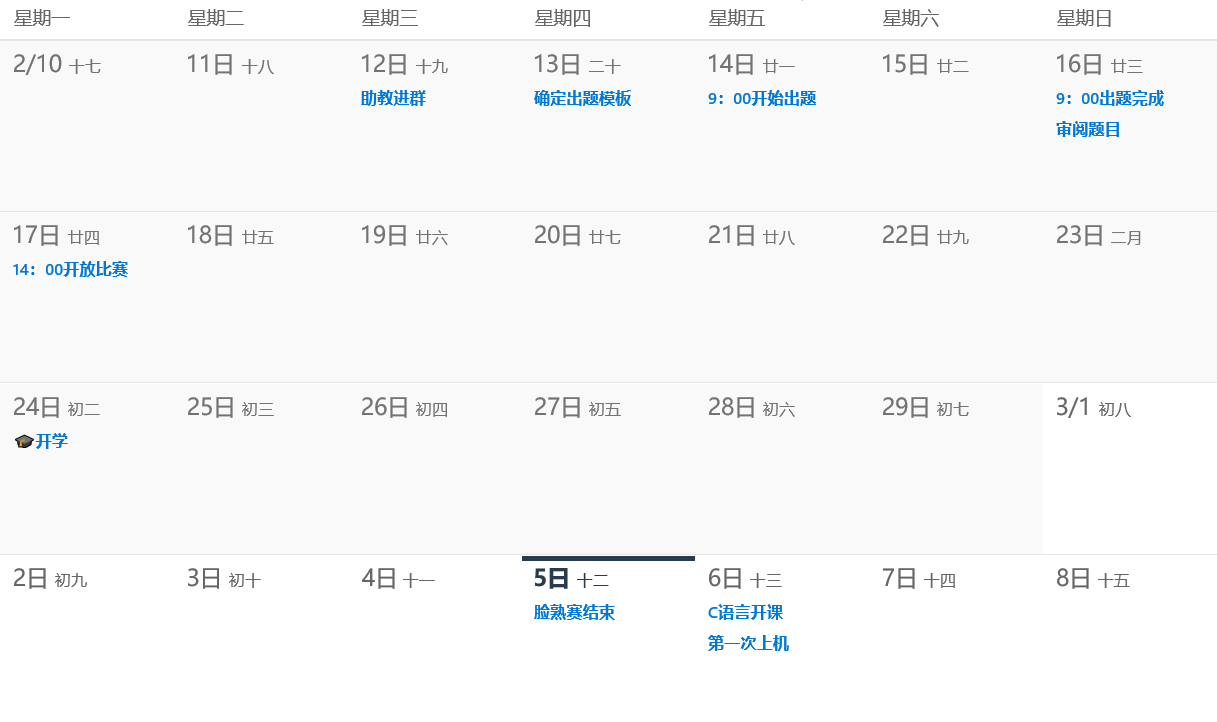 (注:大部分班级在3月6日开课)
