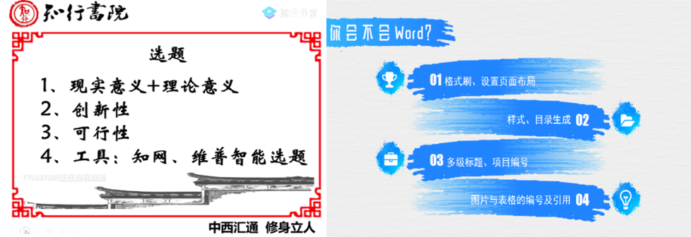 “社科杯”分享会:为提高知行书院学子科学研究与社会调查实践能力,召开了知行书院第三届“社科杯”分享会,邀请到前届优秀获奖者针对学术写作的方法与技巧等问题分享交流学术经验,知行员工热情高涨,积极参与,取得了良好效果。