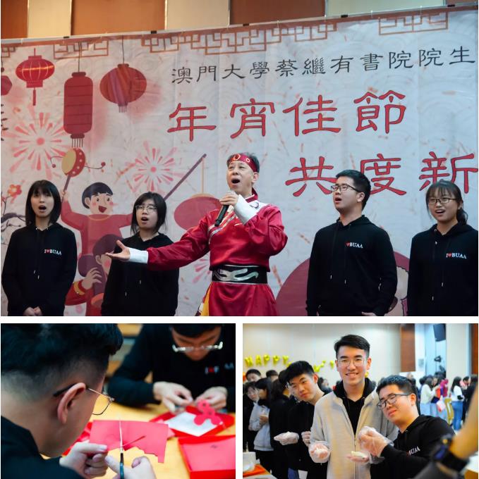 1月15日晚,蔡继有书院策划了精彩的新春晚会,作为宾客的三校书院各自贡献了节目。冯如书院由陈志英教授领衔,与员工共同出演节目《鸿雁》歌舞表演。华东师范大学孟宪承书院贡献了情景剧,西安交通大学崇实书院贡献了歌曲串烧。晚会气氛高涨,宾主尽欢,提前让所有的同学和老师们感受到了庆贺新年的欣喜和温暖,对未来充满期冀。
