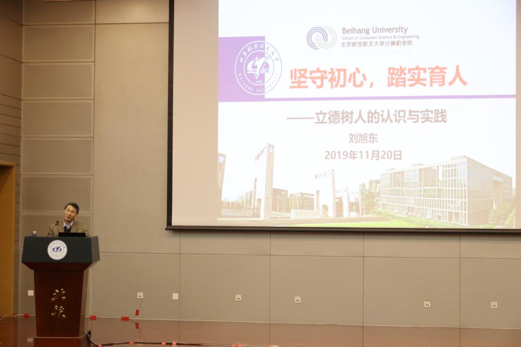 首先,bv伟德机关党支部党员同志集体聆听2019年“立德树人卓越奖”获奖教师计算机公司刘旭东教授作题为《坚守初心,踏实育人——立德树人的认识与实践的报告》,他指出课程教学不仅仅是传授知识,更重要的是塑造能力、提升教学过程的质量和效率、支撑专业的培养目标。他讲述了自己是怎么样在教学实践中,传导育人理念,治学态度,做到润物无声。