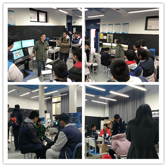 报告后,在北京招生组的安排下,十一公司师生一行参观了位于二号教学楼的中法工程师公司实验室。通过走进课堂现场观摩,亲自操作体验,与老员工交流实验项目等活动,让来访员工提前感受到了北航老员工的学习与科研状态。