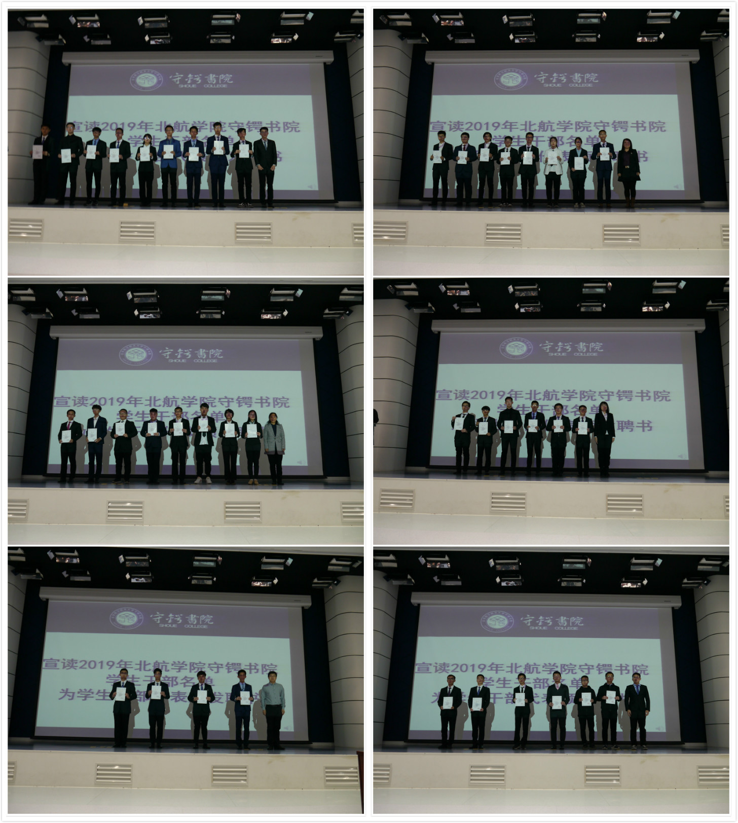 之后,主持人宣读了2019年bv伟德守锷书院员工干部名单。与会领导和辅导员为员工干部代表颁发聘书。