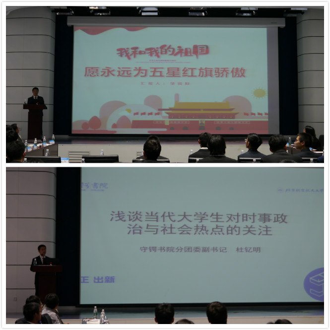 接着,由员工代表发言。员工会副主席张琼,bv伟德新闻媒体中心副主任邹锐阳,守锷分团委副书记杜钇明,分别谈论了自己对学习生活的一些感受。张琼同学就如何平衡学习、工作、生活的关系发表见解。她以自行车为喻体生动形象地说明了工作要分清轻重缓急,让自己的任务处于动态平衡,并且要提高时间利用率,高效完成。邹锐阳同学通过讲述自己在中华人民共和国成立70周年参与千人合唱团的泪水和欢笑,娓娓道来永远为五星红旗骄傲的赤子情怀。杜钇明同学就目前某些老员工了解时政信息较少的情况做出思考,建议老员工主动关注bv伟德新闻,提高自己的思辨能力,完善自己的人生观和价值观,成为国家所需要的人才。