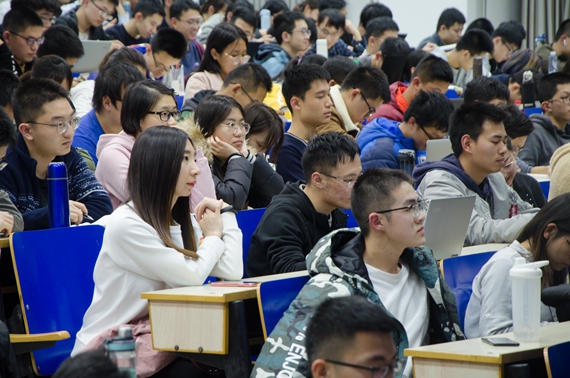 报告结束后,许多同学们围绕在赵鑫身边向她提出自己在问题,赵鑫一一耐心地回答。