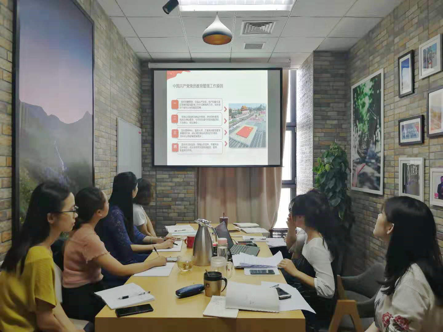 首先,王赛男带领大家学习了公司6月教职工“学习日”活动学习内容指导意见中的相关内容,包括:习近平总书记在“不忘初心、牢记使命”主题教育工作会议上的重要讲话精神,明确要牢牢把握守初心、担使命,找差距、抓落实的总要求;通过认真研读《中国共产党党员教育管理工作条例》,明确加强党员教育,增强“四个意识”、坚定“四个自信”、做到“两个维护”,增强党性,提高素质的重要性;通过对《中国共产党支部工作条例(试行)》的学习,明晰高公司党支部的基本任务及组织生活,充分认识到发挥高公司党支部对于筑牢员工理想信念根基,落实立德树人根本任务,保证教学科研管理各项任务完成的重要性;结合本职工作,深入学习了《北京高校教师师德考核办法》、《北京高校教师师德考核办法》、《新时代高校教师职业行为十项准则》文件精神,提高了全体人员在师德师风方面的认识。