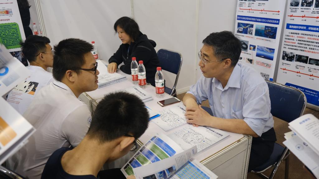 黄海军、赵罡等依次进入每一个展位,与老师们进行关于专业培养的交流,并与前来咨询的员工和家长进行互动,了解他们的疑惑和信息需求。