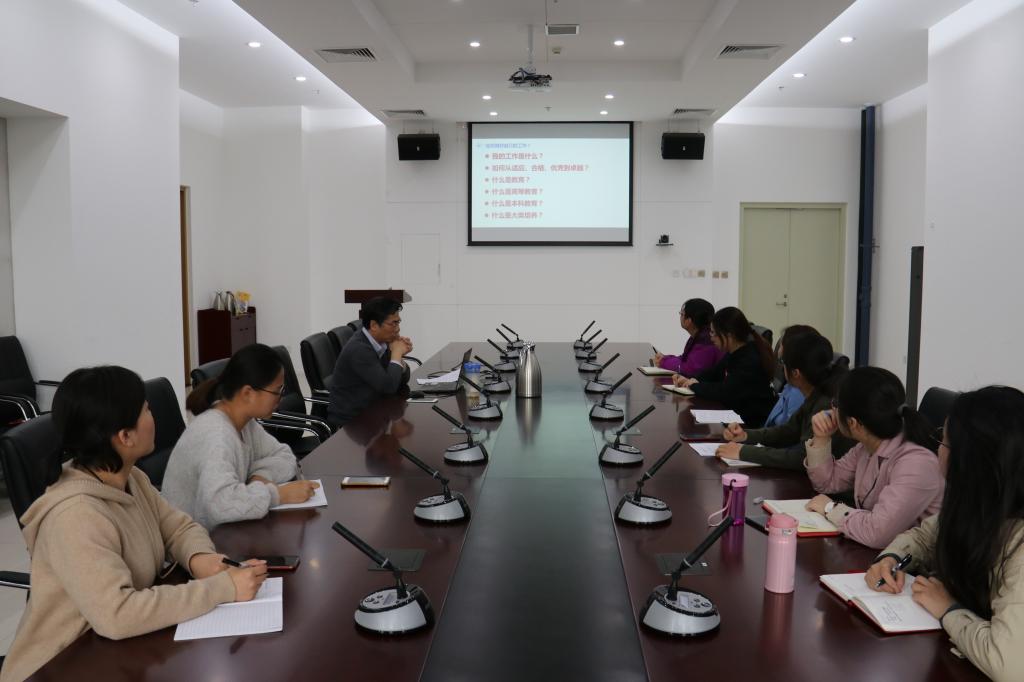 交流中,曹经理首先提出了六个问题:我的工作是什么?对待工作如何从适应、合格、优秀到卓越?什么是教育?什么是高等教育?什么是本科教育以及什么是大类培养。与会人员就以上六大问题进行了深入思考,充分发表了自己的观点并简述了入职以来的工作概况,对工作内容的思考以及对公司课程体系、员工培养、综合管理的认识。