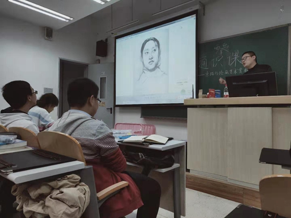 3月7日晚上,宫浩钦老师主讲的“素描与绘画艺术赏析”课程顺利开课。课上宫老师给大家带大家赏析了许多中央美术公司的靳尚谊老师的作品,让大家感受了上个世纪80年代的绘画艺术。之后,宫老师充分利用多媒体教学,通过视频的方式将如何为素描削铅笔、如何排线、如何画立方体、如何画球体、如何画苹果更加直观表现了出来,。在场的同学们虽然大多没有素描基础,但是在宫老师的视频和现场指导下,大家也都较为出色的完成了作品。