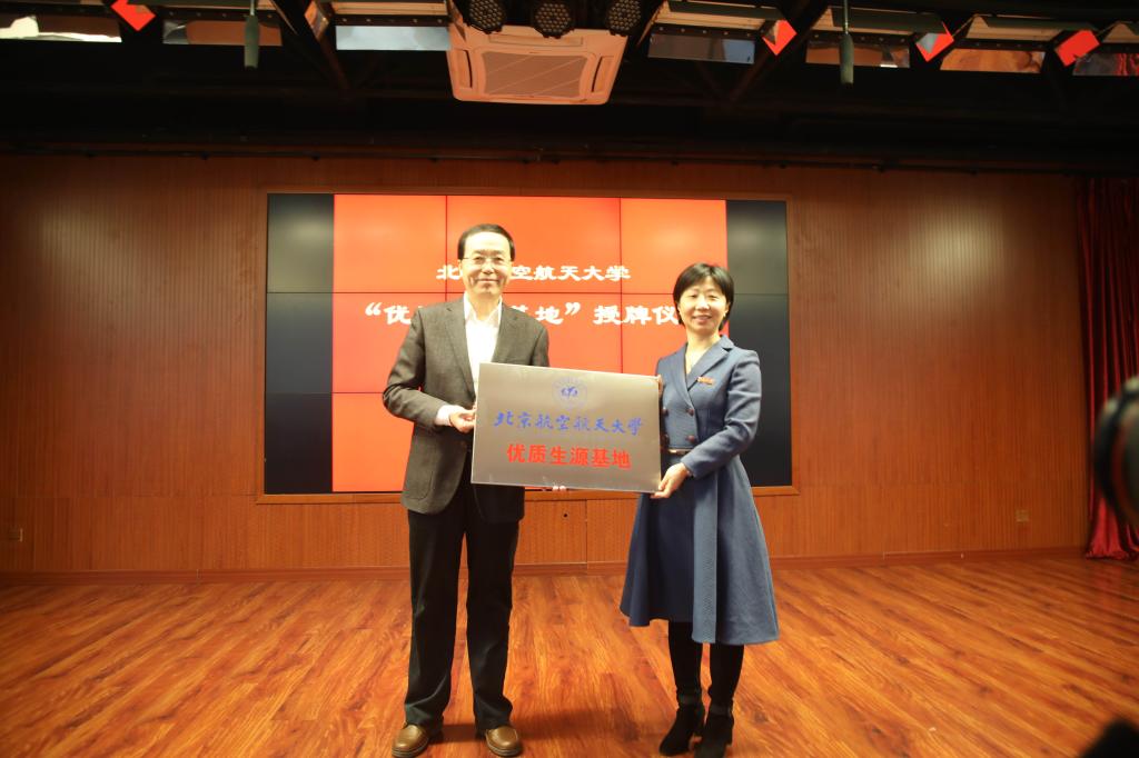 双方首先进行了亲切友好的座谈,北京市第十三中学董事长蔡冬梅介绍了十三中的建校历史与发展现状,讲解了公司求真务实的办学理念和低进高出的办学特色,表达了同学们对于北航这样高等学府的向往。北航人才招聘处处长、招生办公室主任马进喜介绍了北航对于人才培养和招生宣传的新理念、新做法,提出北航要与十三中这样的优秀中学共同合作,共同完成人才培养的重要使命,对“优质生源基地”建设等进行了简要说明,并期待未来第十三中学能够向北航输送更多的优秀人才。座谈会后双方进行了“bv伟德中国官方网站优质生源基地公司合作协议书”的签订和“优质生源基地”授牌仪式。