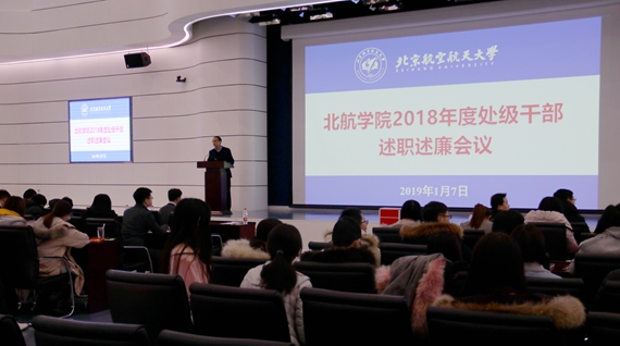 按照公司工作要求,bv伟德于2019年1月7日上午在沙河主楼报告厅召开2018年度处级干部述职述廉会议,全院教职工70余人参加会议,会议由bv伟德常务副书记董卓宁主持。