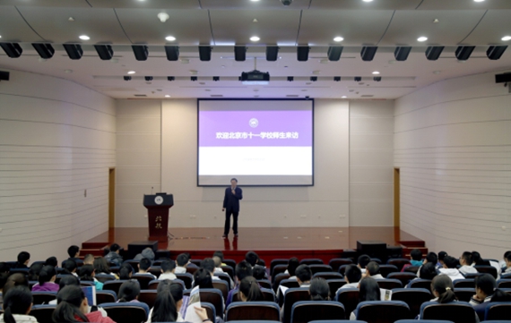 马进喜处长首先对来访的十一公司师生一行表示了热烈欢迎,然后做了《建设世界一流大学,培养领导领军人才》的主题讲座,通过介绍北航近年来在学科专业、团队队伍、人才培养、升学就业和国际交流等方面的发展建设情况让同学们了解北航,而后又介绍了北航目前施行的大类招生与大类培养情况,最后马进喜处长又和同学们交流了相关报考政策,精彩的报告博得了在场师生的热烈掌声。