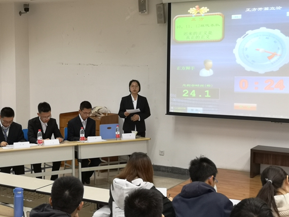 面对辩题,正反两方展开了激烈的辩论,在有限的时间内,双方辩手积极思考,踊跃发言,用生动鲜活的事例验证己方的观点和结论。紧张激烈的辩论后是观众提问环节,学员们积极参与,纷纷提出自己的观点与疑问,与辩手唇上交锋。经过激烈的讨论与评判,评委依次给出了自己的意见,指出双方辩手在立论与发挥上的优势及不足,指出了双方都忽略的辩点与讨论方向。