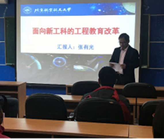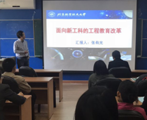(供稿 数学分析类课程组孙玉泉、宋增萍)2018年10月18号下午,数学公司邀请北京市教学名师、士鄂书院(信息大类)学业总导师张有光教授做客“名师讲堂”为公司老师做了“面向新工科的工程教育改革”的报告,报告会由数学公司韩德仁经理主持,分析类课程组全体老师和公司部分青年教师参加了报告会。