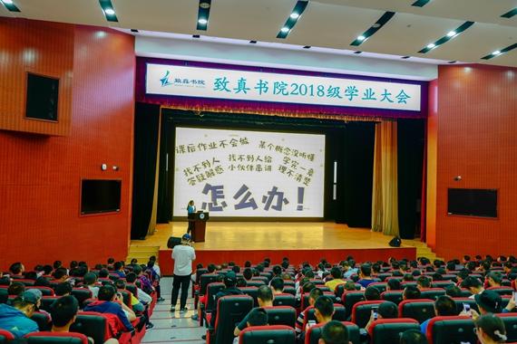 2018年9月16日下午,致真书院在咏曼剧场举行2018级学业大会。致真书院经理王惠文,执行经理闵敏,专职辅导员魏茜、毋艺臻,学业助理丁贝贝,17、18级半脱产辅导员及18级全体同学参加了大会。大会由专职辅导员毋艺臻主持。
