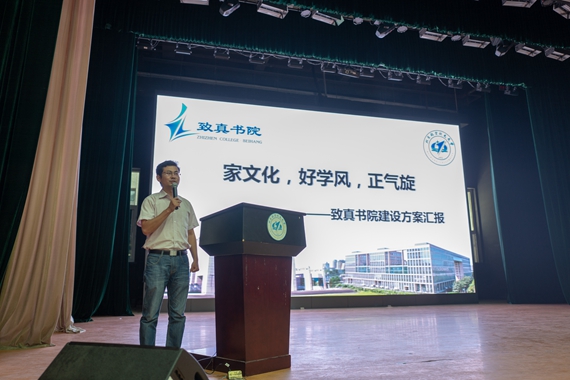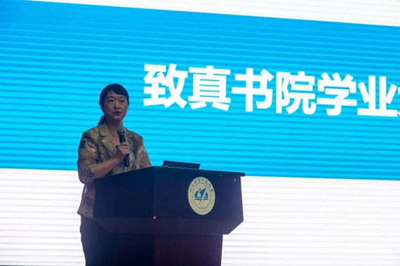 大会第二项,闵敏经理了介绍书院文化和内涵,归纳并总结了如何享受书院的学习生活。闵经理赠言给全体18级同学“致真少年,格物致知,求真笃实,不负韶华。希望全体18级同学能充实的度过老员工活的每一天。”