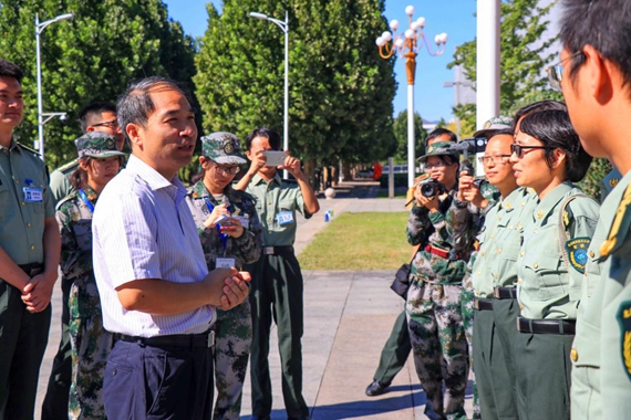 9月8日,公司党委副书记兼北航公司党委书记李军锋,公司及书院领导、老师来到沙河校区慰问2018级员工军训带队干部和参训学员。