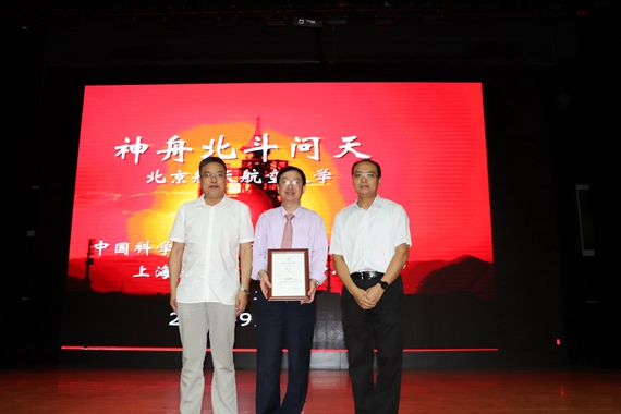 林宝军研究员现任上海微小卫星工程中心副主任,载人航天工程应用系统副总设计师。林总师以《神州北斗问天》为题目作了精彩报告。林总师为同学们讲述了神舟与北斗系列的点滴,用幽默风趣的语言道出了每一次升空和每一场发射背后的艰辛。“即使我们几个无法回去,也要让国旗在太空飘扬。”说到这里,林总师热泪盈眶。的确,每一次飞行任务都充满了未知。从事这个领域的人,都将国家利益放在个人利益之上。而这正是每个平凡的人可以为这片土地所做的,最简单,也是最深刻的事情。“谁能继续坚持下去,谁就是最后的胜利者。”林总师说很多事情都是这样,当思路进入瓶颈,当项目突遇困难,放弃是一无所有,坚持是峰回路转。“我们做的事情,就是将很多不可能的事情变成可能。”正是因为科研人员具有这种信念,才有了神舟上天,才有了北斗问世。震惊世界的事情,往往在其之前被称为不可能。