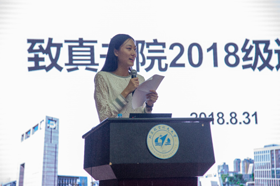 书院经理王惠文老师代表书院执行团队致辞。王经理介绍了致真书院,并为同学们的学习成长提出了建议。面对大学的迷茫感和孤独感,书院启动了导师计划、梦拓计划、学业指导计划,让同学们收获“归属感、认同感、使命感、获得感”。希望同学们在大学四年的学习和生活中:健康、充实、快乐、自豪!