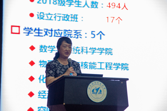 会后,物理公司教学副经理黄安平老师为新生讲解了理科大类一年级培养计划。教学秘书和佩佩老师解读教学管理制度,并就选课相关事宜为同学们做了介绍。