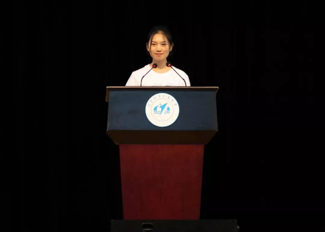 随后,优秀在校生刘祖欣同学代表北航的学长学姐欢迎了新生的到来,他通过自己的大学成长经历激励新生们在大学继续努力拼搏。