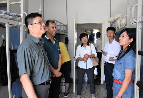 29日下午杨超经理与陈志英总导师来到员工宿舍对入住新生进行走访慰问,了解新生食宿条件,询问新生对校园的满意度,鼓励员工们以积极的心态迎接崭新的学习和生活。