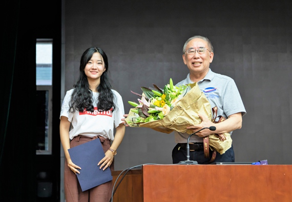 随后,冯院士和员工们进行了热烈的互动,回答了同学们关于中国航空现状的问题,以深刻的见解和炽热的爱国情怀赢得了在场的学子阵阵热烈的掌声。最后,冯如书院员工代表为冯院士献花并合影留念。
