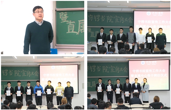 (通讯员 饶琦昱 葛文赫 蒋茁)3月21日晚20:30,守锷书院于J3-103召开守锷书院宣传工作大会暨直属中心骨干聘任仪式。守锷书院执行经理、专职辅导员、事务助理,书院团委宣传部、员工会宣传部、守锷党建工作坊、社团负责人,各大班长、团支书、宣传委员,小班宣传委员,bv伟德新闻宣传中心、学业发展中心、员工事务中心共百余人出席会议。会议由守锷书院bv伟德新闻宣传中心主任蒋茁主持。