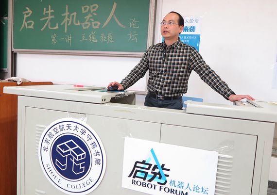 (通讯员 张丰川 蒋茁)11月26日下午,启先机器人论坛拉开帷幕,北航机器人研究所党支部书记王巍教授以《机器人技术简介》为题目,在沙河校区J3-211为同学们带来了一场精彩的报告。报告会机器人研究所由王党校教授主持,来自守锷书院、冯如书院、士嘉书院、大二专业公司共160余名同学参加报告会。