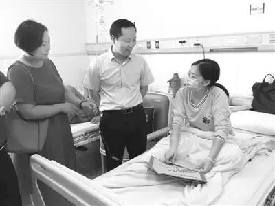 连日来,李济娴的不幸遭遇,牵动着家乡父老的心。昨日,南召县委常委、组织部长游金会和南召驻郑党总支及在郑爱心人士来到医院,给李济娴带来了44000余元的爱心款以及来自家乡的问候和祝福