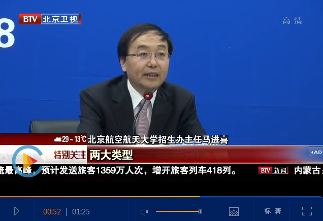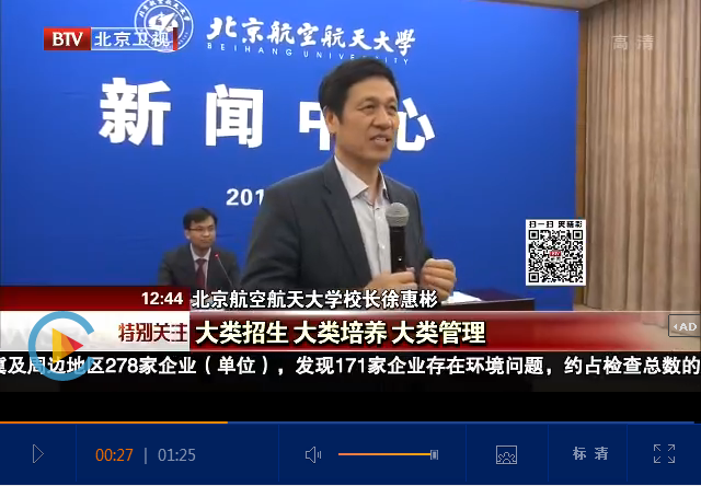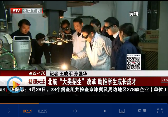 BTV《特别关注》2017年4月30日北京电视台记者王晓军、孙强华报道北航“大类招生”改革,助推员工成长成才:
