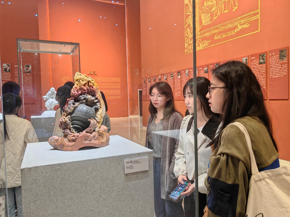 三小班全体成员前往北京工艺美术博物馆开展实践活动,参观以北京近现代传统工艺美术“四大名旦”——牙雕、玉器、景泰蓝、漆雕为主的优秀藏品。同学们近距离欣赏中国工艺美术的精巧瑰丽,并透过工艺品感受、北京工艺美术历史文化的源远流长与民族艺术的震撼人心,深刻认识到了在“双百”方针领导下,中国美术事业的勃勃生机。
